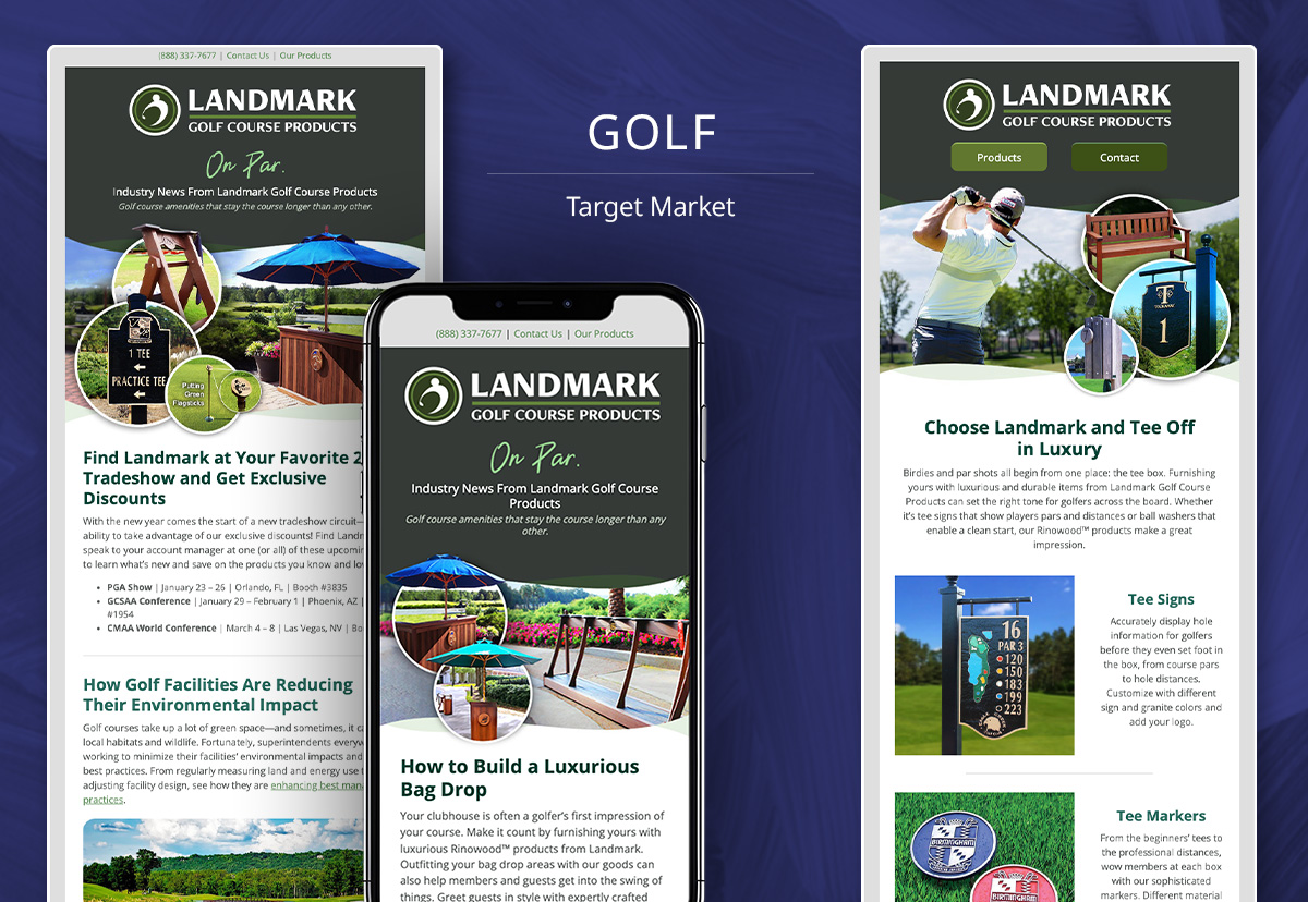 For this project, the primary objective was to promote the sister businesses “Landmark Studio & Design” and “Landmark Golf Course Products.” The aim was to drive sales, position the client as an industry expert, and maintain consistent communication with diverse market segments. By focusing on these goals, the campaign sought to enhance the client’s market presence and establish a stronger connection with potential customers.