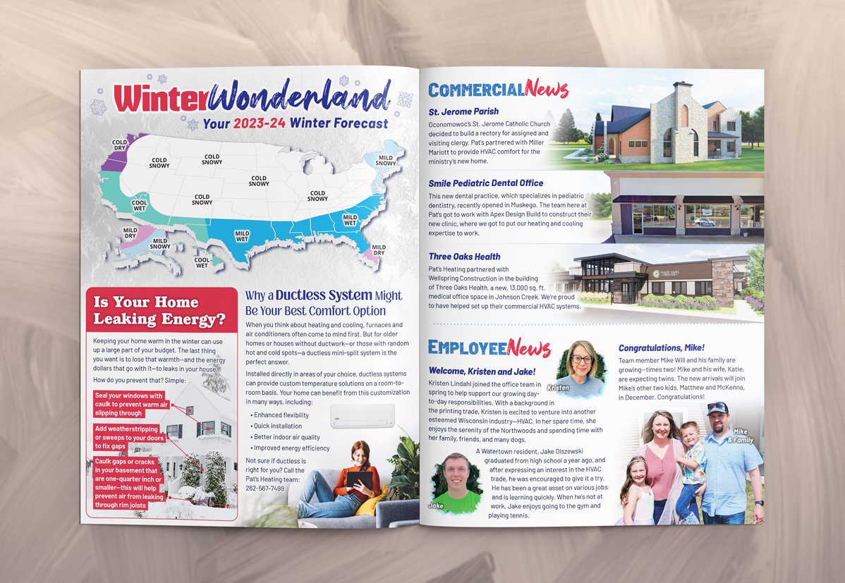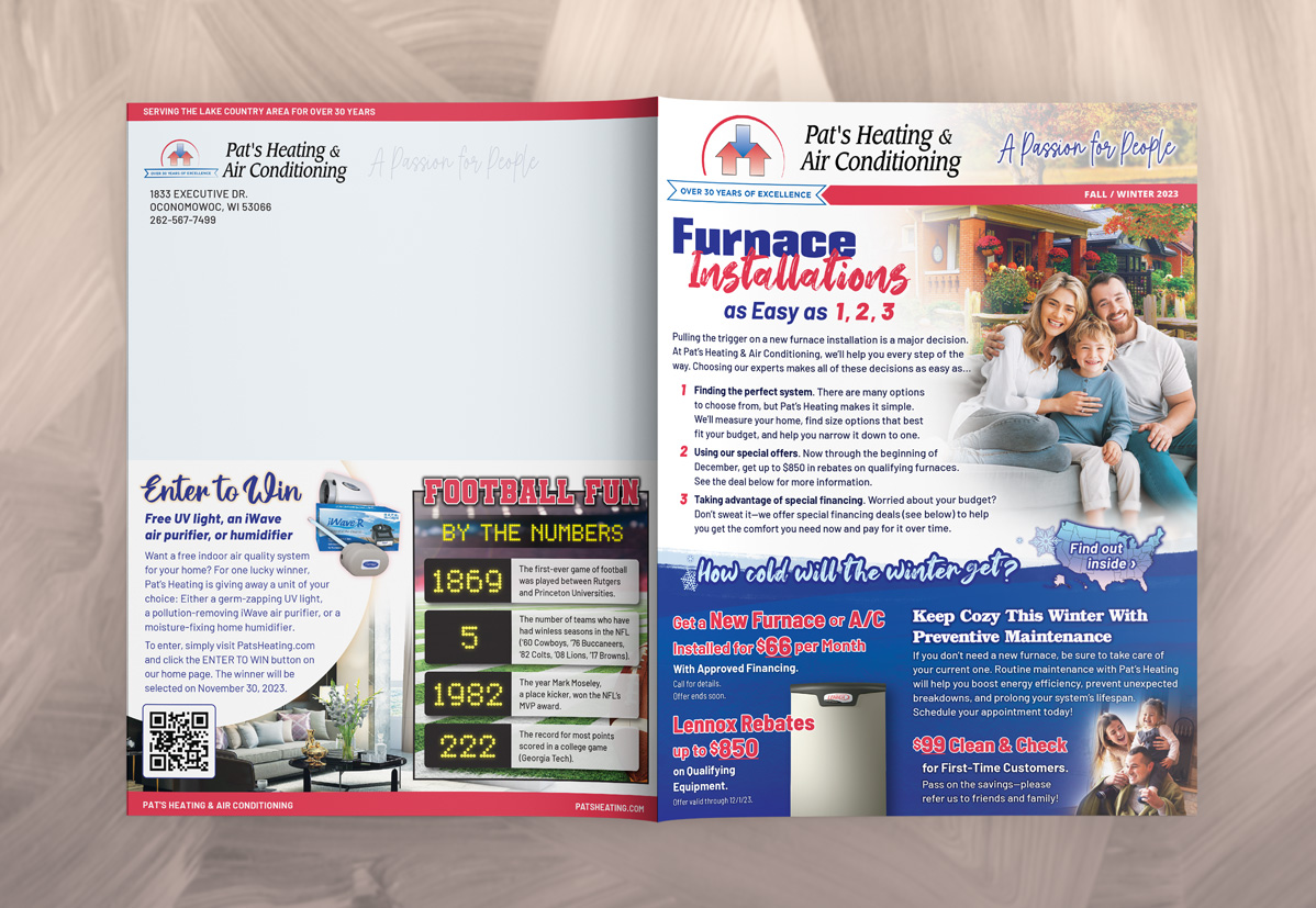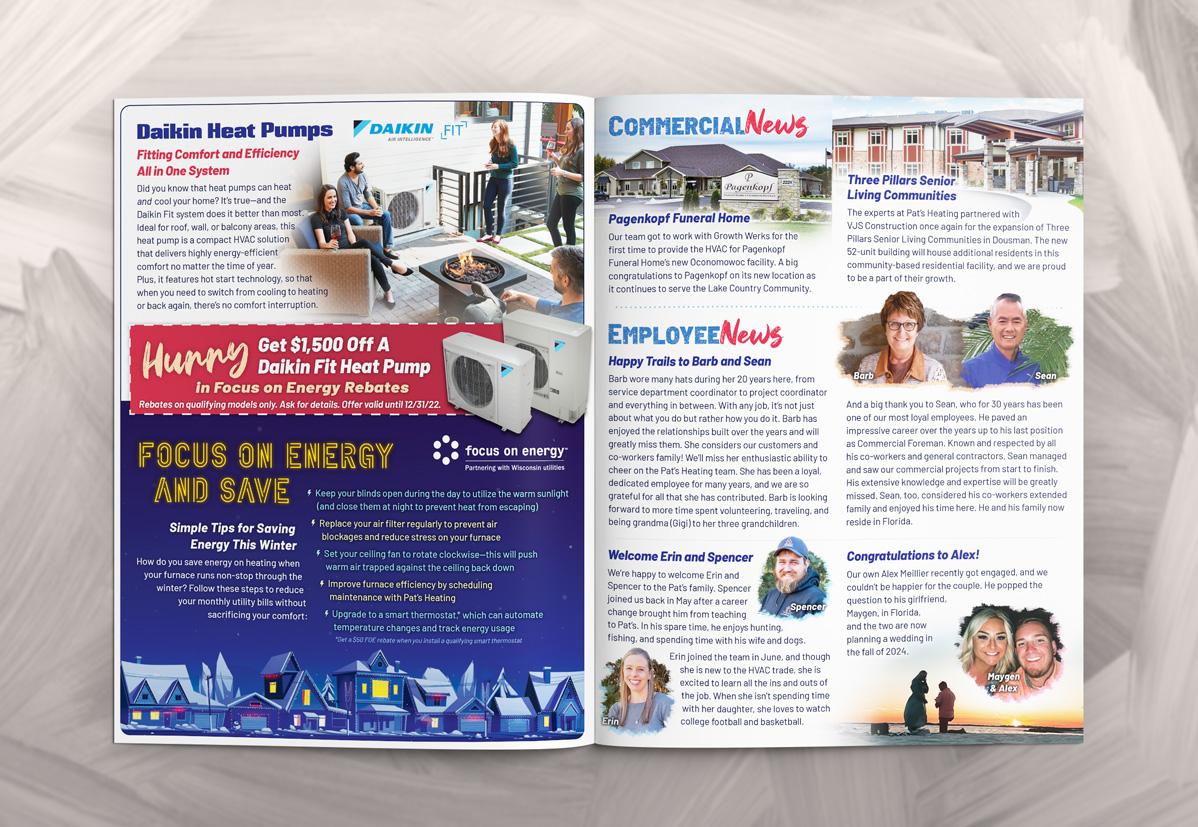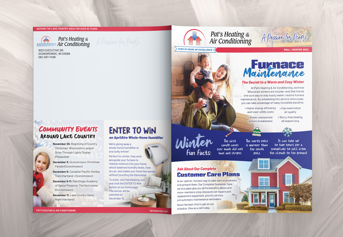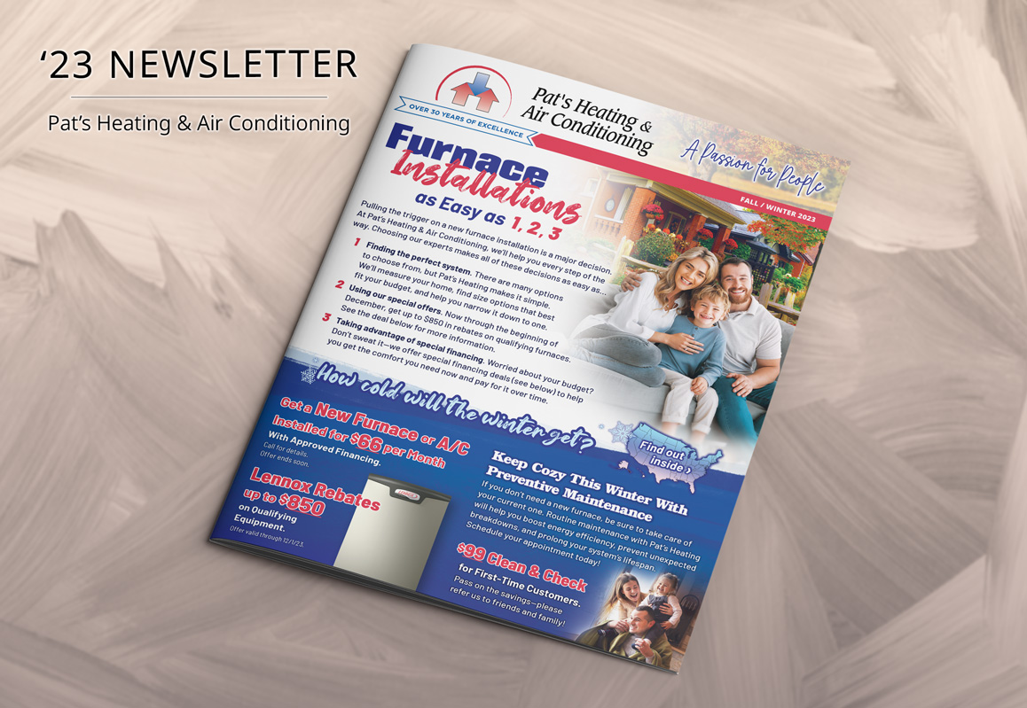 The result has been a successful biannual newsletter series running for over six years. These newsletters have fostered strong relationships with customers, shared valuable business news and promotions, and generated leads. They continue to be a highly effective tool in promoting Pat’s Heating’s services and keeping the community engaged and informed.