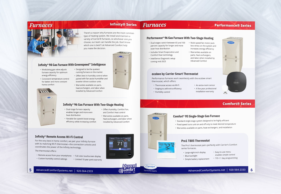 The result was a comprehensive sales tool that effectively informs customers about their heating and cooling options and shares important information about Advanced Comfort Systems Inc. The brochure successfully communicates the company’s expertise and commitment to quality service, positioning them as a trusted provider in the HVAC industry.